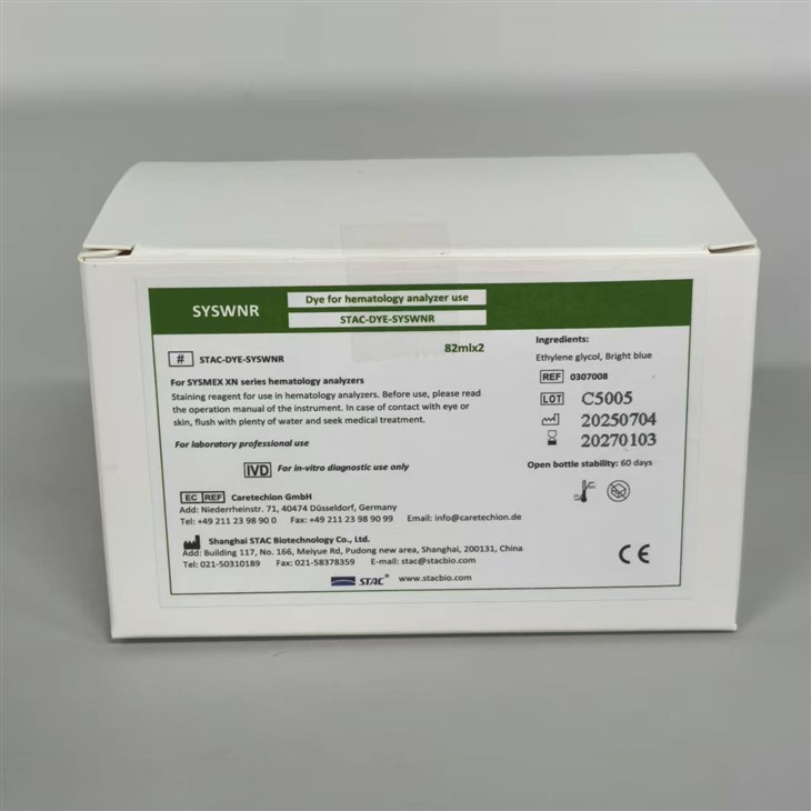 Sovellus:Dye for Sysmex -hematologiainstrumentti soveltuu Sysmex 5--osasarjaan: XN-B1/XN-B2/XN-B3/XN-B4 hematologisen analysaattorin linja.
